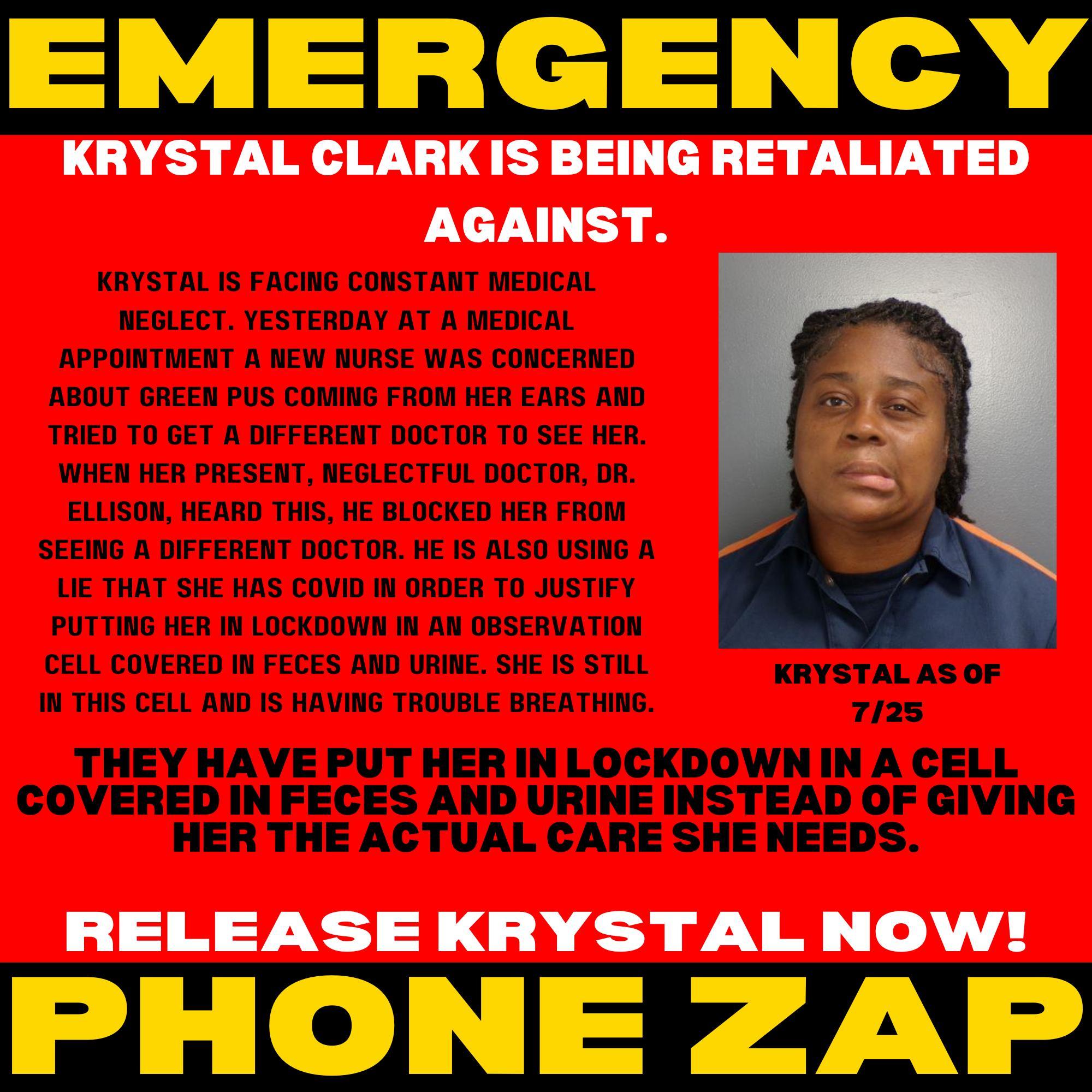 EMERGENCY PHONE AND EMAIL ZAP FOR KRYSTAL CLARK
