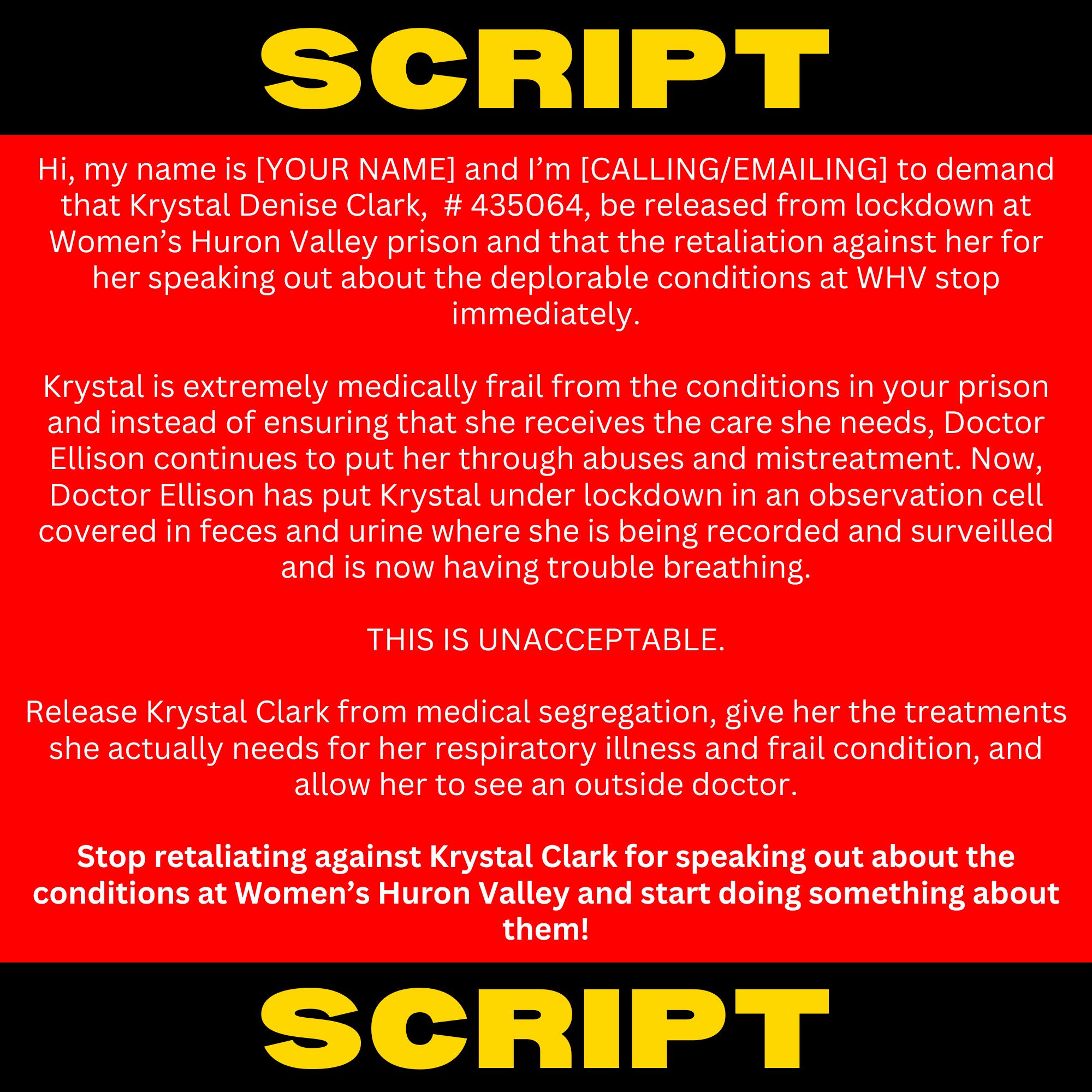 4: STOP RETALIATING AGAINST KRYSTAL FOR TALKING ABOUT THE CONDITIONS IN THE PRISON AND START DOING SOMETHING ABOUT THEM!
