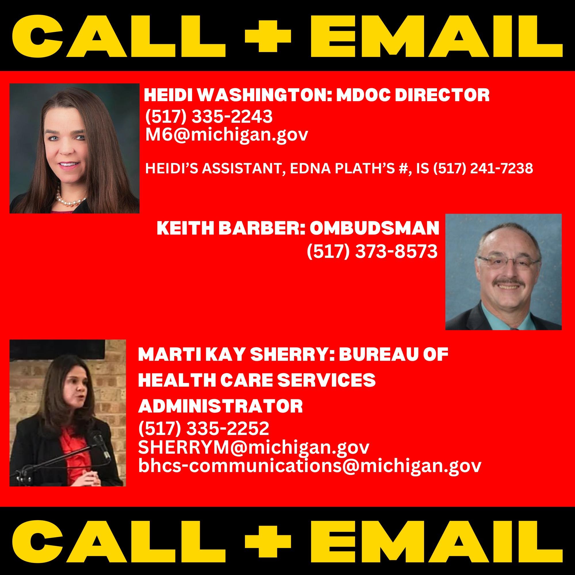 CALL TODAY AND THROUGH NEXT WEEK’S BUSINESS HOURS UNTIL SHE IS RELEASED FROM MEDICAL SEGREGATION, EMAIL ENDLESSLY