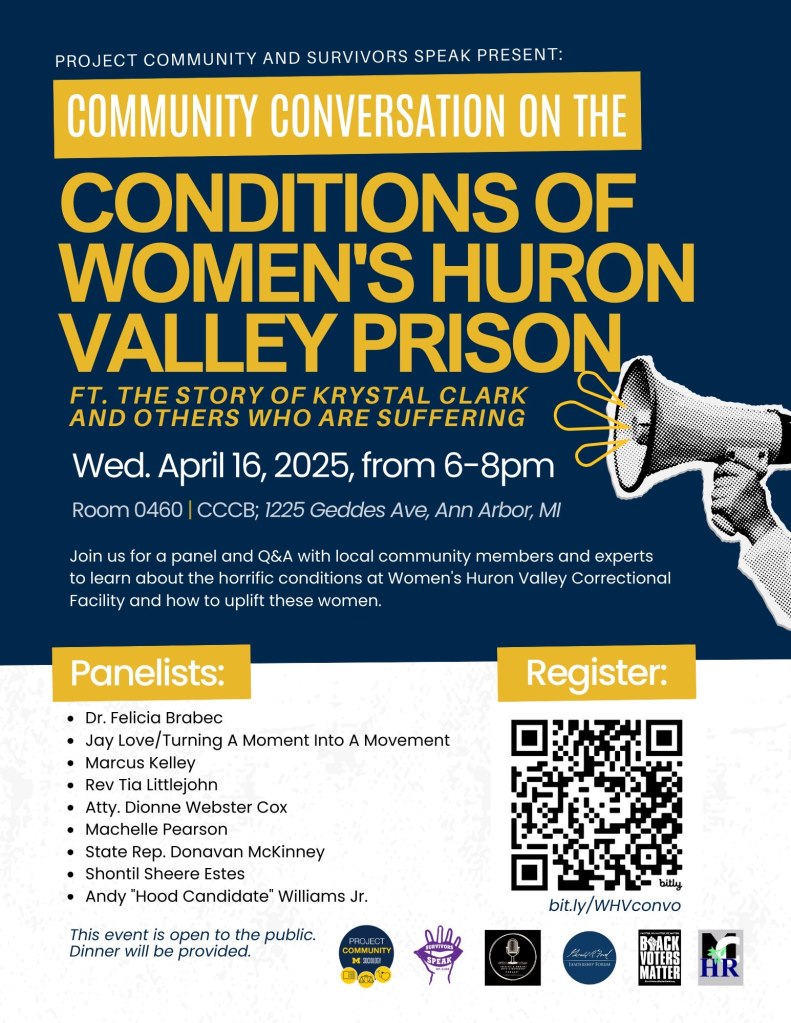 On the conditions of Women’s Huron Valley Prison, ft. the story of Krystal Clark and others who are suffering | April 16, 2025 @ 6-8pm